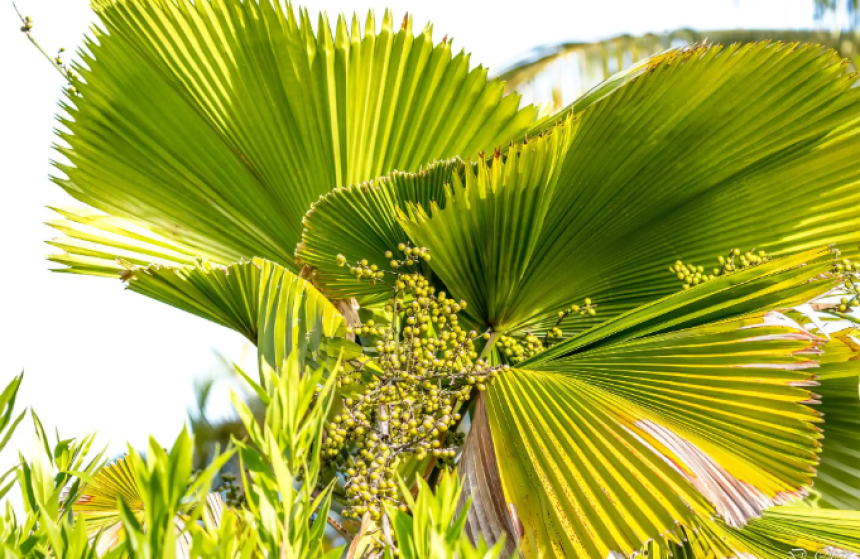 A palmeira-leque impressiona pela forma escultural de suas folhas amplas, que lembram um leque aberto. Quando posicionada em vasos grandes próximos à porta, ela traz imponência e elegância para a entrada de casa. Prefere áreas bem iluminadas, mas não de sol direto, o que a torna ideal para espaços cobertos ou semiabertos.
